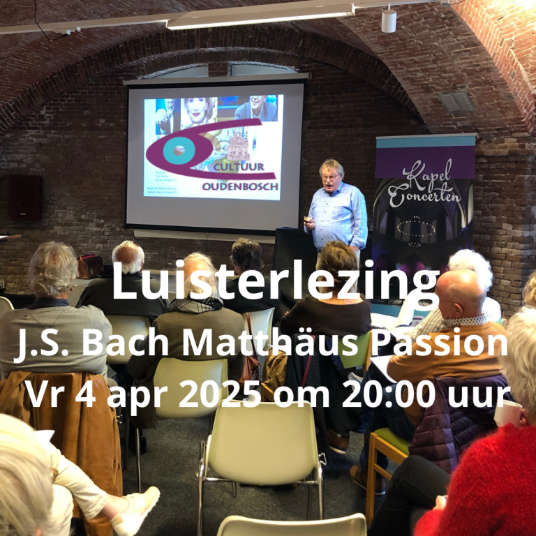 Oudenbosch bestond al zo’n 325 jaar toen Bach zijn Matthäus Passion schreef. Toch speelt dit werk in Oudenbosch een grote rol, want al vele jaren wordt dit werk rond Pasen uitgevoerd in de prachtige Kapel van Saint Louis. Wil je er nu de achtergronden eens van weten? Kom dan naar de lezing van Leo Wolfs!