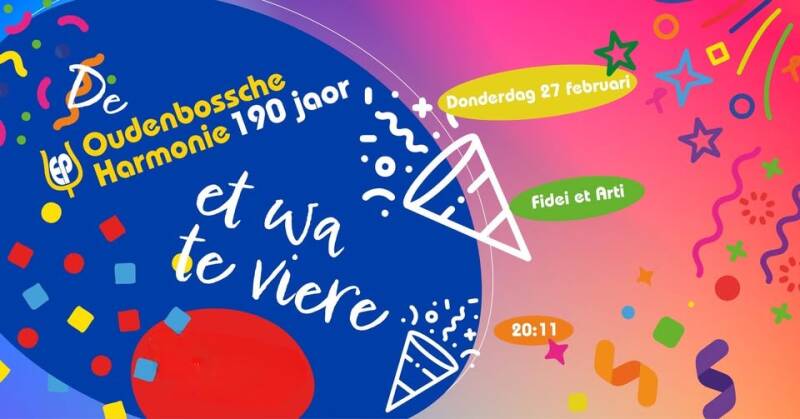 Met het 190-jarig bestaan van de Oudenbossche Harmonie 'ebbe we wa te viere'! Kom naar het carnavalsconcert en ga samen met de harmonie terug in de tijd.
